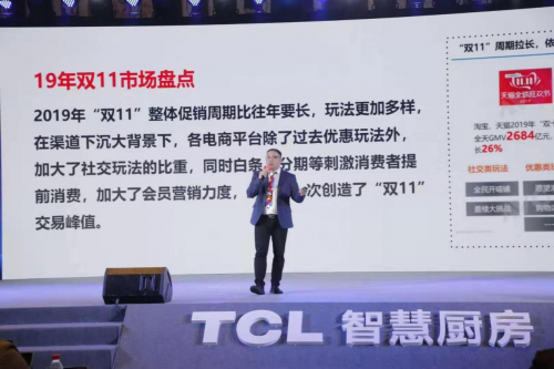 同时线上电商销售总监雷卓雄先生从电商的前世今生看未来营销趋势,回顾了TCL家用电器(中山)有限公司2019年电商的成果,并提出了更高的目标。从成功案例出发,为客户伙伴分享了信息时代品牌销售营销的趋势。2020年将在产品升级、渠道深耕、协同效率、团队打造等方面进行跨越式提升。提升线上品牌形象、给予会员私域流量支持、重整厨电自营体系、启动商家培训计划,携手客户一起共赢。