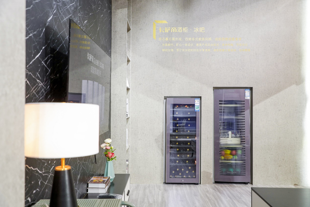 以刚刚发布的鲜+原石套系为例,其创新采用了岩板和石纹元素,整套产品拥有一致性的艺术外观,与不同风格的厨房、客厅、书房都能实现百搭,符合高端用户对家居美学的极致追求。卡萨帝储鲜套系可通过物联网实现联动:根据冰箱推荐的食谱烹饪好晚餐,冰吧刚好发来"暖藏区的芒果记得食用"的提醒;餐前,可在手机上查看酒柜里哪瓶酒正处于最佳品鉴期,好酒上桌,一顿健康晚餐即可开动。不难发现,从厨房、客厅、餐厅到书房,你所需要的储鲜产品,都能在鲜+原石套系一站式购齐,有效率更有品质。