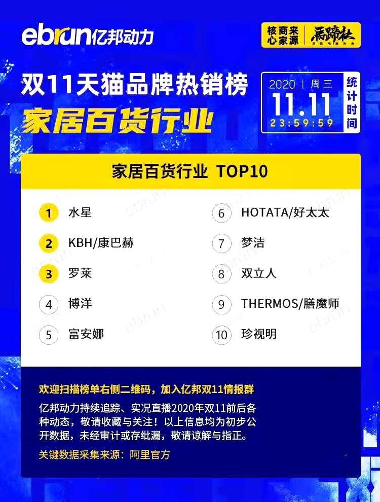 在今年亿邦动力发布的双11天猫家居百货行业品牌热销榜TOP10,康巴赫凭借德国工艺和蜂窝防粘技术赢得消费者认可,一举拿下除水星家居之外,厨具品类销售冠军。除此之外,双立人等国外品牌也以国际水准的产品实力,位列榜单。康巴赫,双立人们的走红,正是消费升级大环境下,消费者对品质生活孜孜不倦追求的产物。