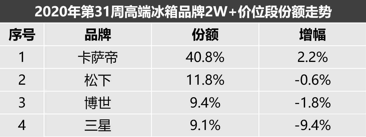 中怡康冰箱31周:整体向好,卡萨帝、松下等高端品牌拉动明显