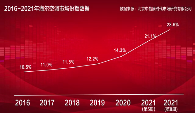 事实上,在过去5年间,海尔智家空调市场份额已经从10.5%增至23.6%,实现了翻番增长。具体来看,大致可以分为2个阶段: