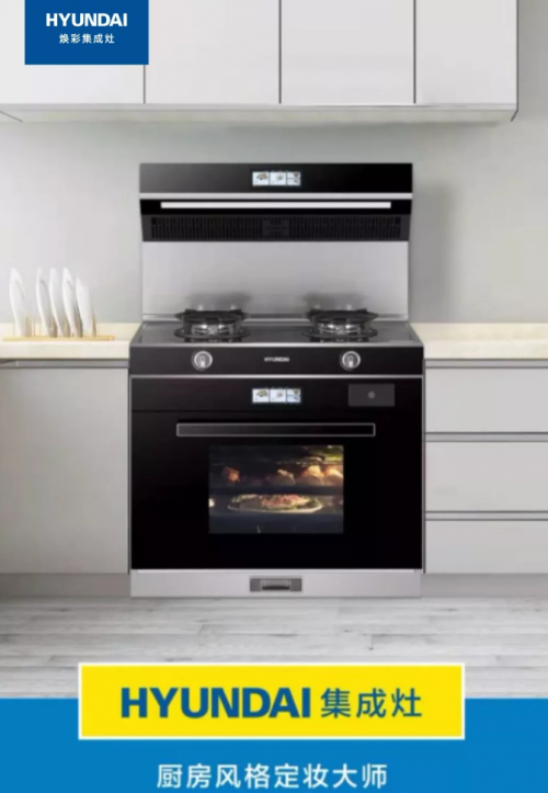 HYUNDAI韩国现代智能焕彩集成灶;厨房风格定妆大师,集成灶不仅仅大吸力、大火力、真蒸烤。探索万千美食的奥秘,追求藏在一饭一蔬的幸福,感受美与厨房结合的独特魅力。