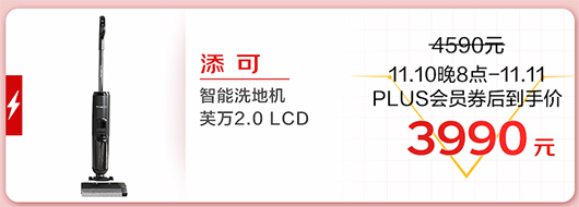 智慧家电,可以让大家留出更多时间来享受生活。戴森V10高端吸尘器,京东预估到手价2990元;小米洗地机京东到手价2999元。客厅是一家人每天活动最久的区域,美的1.5匹新一级大出风口空调,冬天也能保证室内空气新鲜,京东PLUS会员到手价2399元;添可智能洗地机芙万2.0 LCD,京东PLUS会员手价3990元,解放双手就是这么简单。