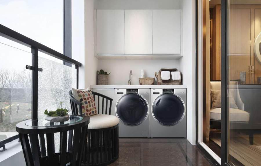 在三翼鸟智慧阳台场景,衣物的洗涤、烘干都能一步完成。场景中的海尔洗干套装实现了洗烘联动,能自动匹配程序,让用户彻底告别自然晾晒,还能随洗随穿。