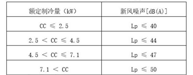 表3新风功能单独开启时噪声值要求(声压级)