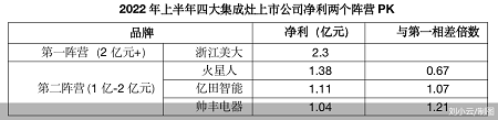 综合2022年上半年四大集成灶上市公司的业绩来看,呈现两大趋势:一是营收分层明显,正以10亿和5亿元为界形成三大梯队;二是净利相差悬殊,正以2亿元为界分成两个阵营。