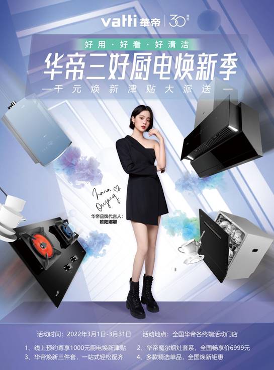#华帝三好厨电焕新季#活动时间为3月1日-31日,内容包含线上预约(预约链接https://m.sale.vatti.com.cn/activity/index)即可尊享1000元厨电焕新津贴、华帝魔尔烟灶套系全国畅享价仅需6999元、华帝鸿蒙智联新品燃气热水器JW6i仅2999元、华帝焕新三件套一站式轻松配齐等多种焕新钜惠(详情咨询全国华帝各终端活动门店),惊喜颇多!