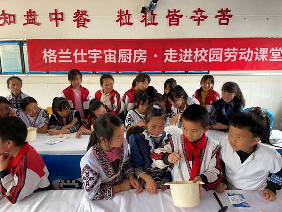 除了走进国民厨房,航天技术成果同样还深入到中小学生课堂中。响应国家“中小学生学做饭”教育号召,格兰仕联合义务教育阶段学校发起“学做饭、我能行”宇宙厨房烹饪课堂,促进新一代青少年基本生存技能与动手实践能力的提高。目前,“学做饭、我能行”宇宙厨房烹饪课堂已在广东、云南等地开放,为在校学生带来了一堂堂别开生面、妙趣横生的烹饪教学。