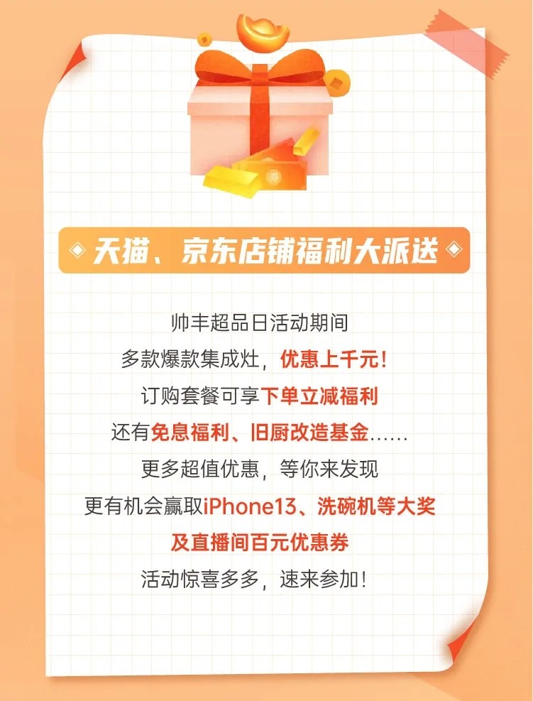 大国品牌帅丰集成灶超品日盛装来袭,天猫、京东、全国门店同步开启!