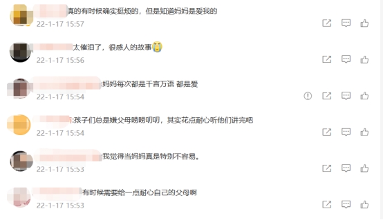 父母对子女的爱从来都是深沉的,是含蓄的,短片中妈妈的微信长语音让很多网友破防!京东电器《60秒》情感短片通过温情质朴的叙事方式,唤醒观众对于父母与子女之间亲情的重新审视,引发了一场关于亲情、关于陪伴话题的探讨,一时之间,“你有多久没有听妈妈的话了”,“当收到父母60秒连环Call,你有耐心听完不”以及“年底果然是爸妈催婚对的好时机”等话题持续发酵,引起了广大网友的共鸣与探讨,形成与用户的情感共振。