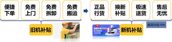 (图:苏宁易购以旧换新“三免两补一送”服务)