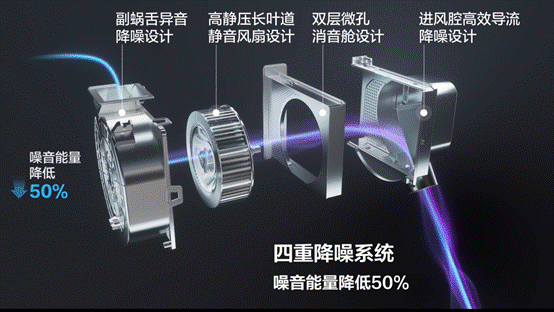 TCL空调的工程师团队对整个风道流路做了技术创新优化,在进气腔,采用创新的双路导流设计,通过仿真找到一个最佳的进气入流角,让空气流动的更顺畅,可以减少空气和风道腔体的碰撞;同时我们增加了双层多孔吸音舱,声音的能量在这些细微的孔中不断地反射衰减耗散,以达到用户对声舒适的要求,噪音能量降低50%。