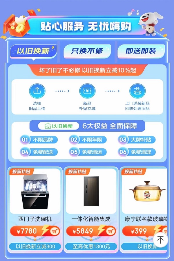 以旧换新立减10%起、180天只换不修 京东家电家居中秋国庆黄金周选对服务焕新家