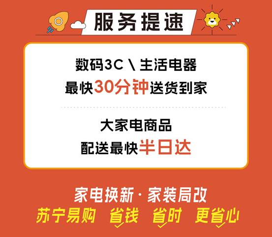 在服务履约方面,配送时效将进一步提升。双节期间,苏宁易购将持续深化与美团、饿了么的合作,消费者在即时零售平台购买苏宁易购3C数码及生活电器,最快可30分钟送货上门。针对大家电商品,苏宁易购也在双节期间在上海试点“送货最快半日达、送装一天完成”的极速体验,服务覆盖空调、冰箱、洗衣机、厨电等主流家电品类,消费者上午11点前下单,当天晚上8点前送达;下午6点前下单,次日下午2点前送达。在安装时效上,上午送达的订单,当天完成安装;下午送达的订单,24小时内完成安装。