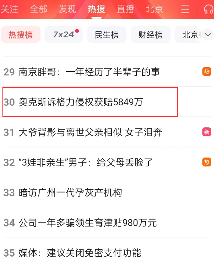“奥克斯诉格力侵权获赔5849万”冲上百度热搜