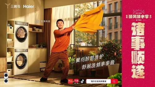 不止如此,还有TVC旺桃花篇中,女生在智慧浴室掌握了“好水洗出桃花运”的姻缘密码。以及在气顺纳福篇,男生春节加班靠着客厅“新鲜好空气顺心安神”后,气定神闲解决了工作问题。总之,海尔三翼鸟通过衣食住娱不同智慧场景解决方案,为每位用户满足新年心愿的同时,亦回馈着“千人千面”美好生活的期许。