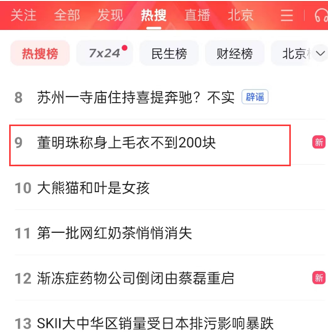 “董明珠称身上毛衣不到200块”冲上百度热搜 网友:实打实打拼出来的