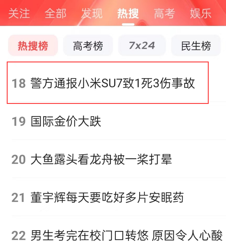 “警方通报小米SU7致1死3伤事故”冲上百度热搜:驾驶员操作不当