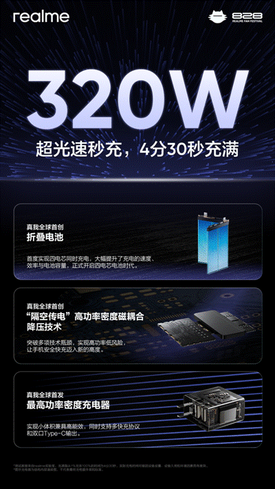 4分30秒让手机充满电 真我全球首发320W超光速秒充