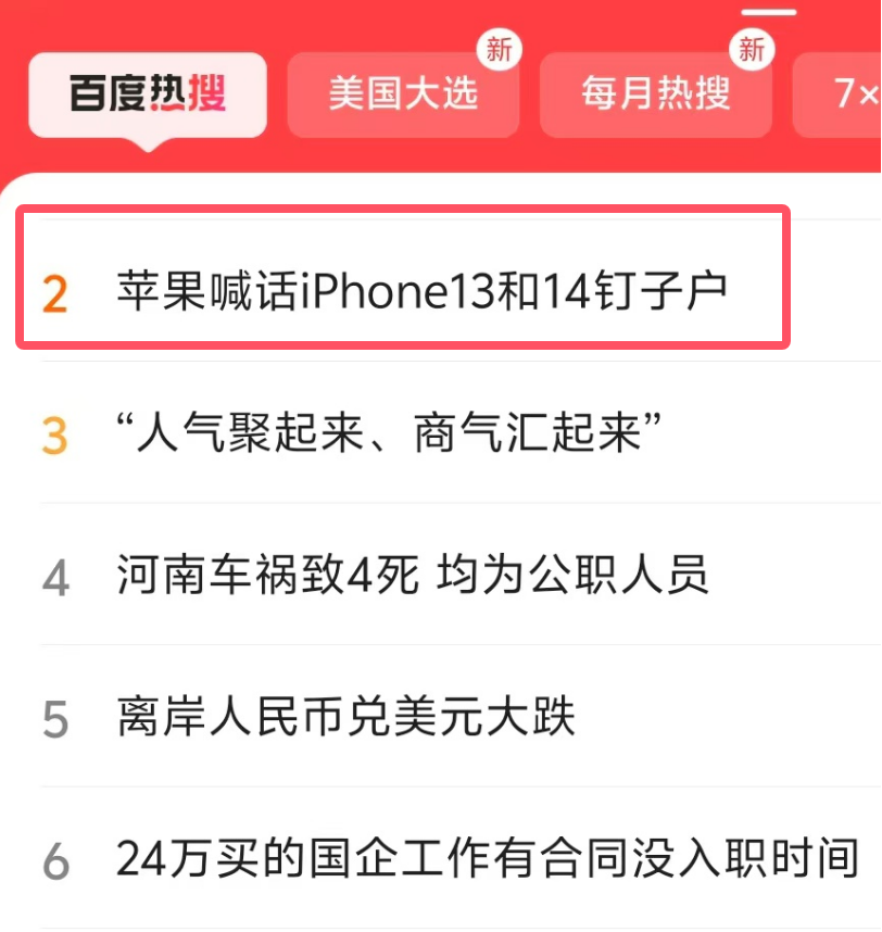 “苹果喊话iPhone13和14钉子户”冲上百度热搜 网友:卖不动光靠喊没用