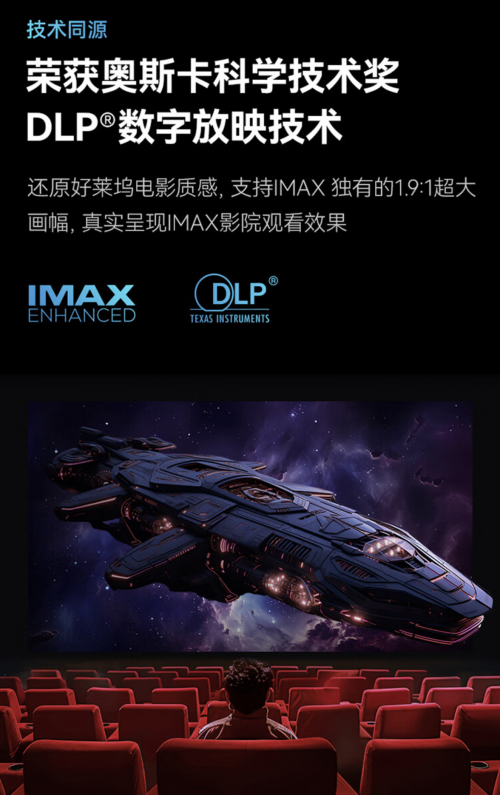 从画质上来讲,激光电视用的是电影院同源技术,同样都是以激光作光源以及DLP数字放映技术,从技术源头就确保了能收获与电影院同样的观影效果。