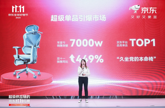京东零售自有品牌相关负责人介绍,京东京造与国内超70%产业带展开合作,推动嘉瑞福等外贸代工企业成功开拓内销市场,建立开放协同的产业生态。京东京造与嘉瑞福共创的Z9Pro人体工学椅双十一期间成交金额接近一千万,同比超五倍,用户好评率达99%以上。