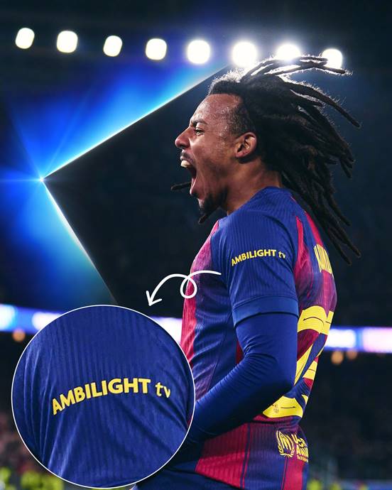 飞利浦深耕多年的独家环景光技术,搭载第十代Ambilight智能算法,用四侧环绕的LED灯带打破屏幕边界,让孔德的荣耀之路在光影中立体铺展。当第50分钟拉什福德传中,孔德腾空而起的刹那,屏幕上红蓝球衣的亮色随头球弧线“溢出”,墙面瞬间被进球的光芒浸染;仅仅2分钟后,亚马尔助攻孔德复制神迹,环景光同步迸发双倍璀璨!