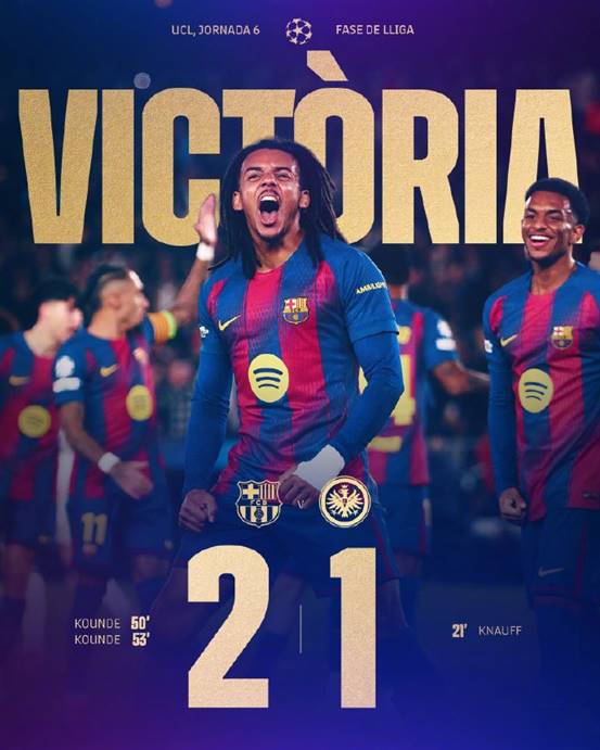 巴萨2-1逆转法兰克福!飞利浦环景光电视见证孔德头球梅开二度