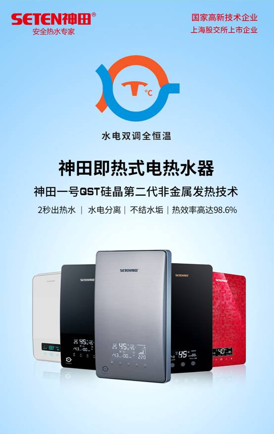 自2022年起,神田集团就一直主力推广水电双调全恒温即热式电热水器,经过几年的产品研发,现在已经形成了完整的水电双调全恒温产品线,全系统产品可以满足多层次的消费需求。