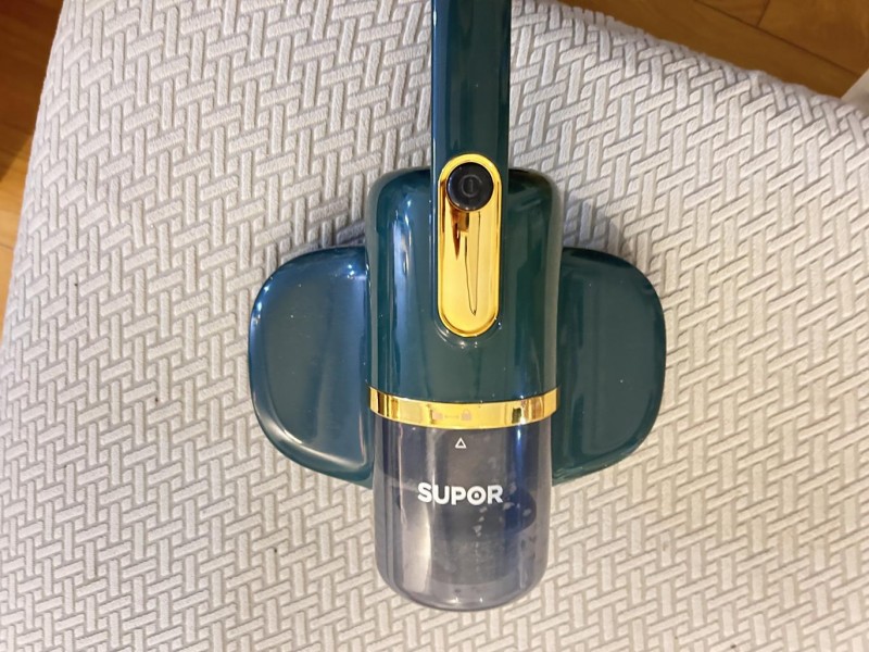 苏泊尔除螨仪以 “复古绿” 为主色调,搭配流畅圆润的机身线条,无尖锐棱角设计,既美观又能避免清洁时刮擦家具、皮肤。人体工学手柄握持感舒适,黑色电源按钮位于手柄前端,指尖轻按即可开关机,老人、宝妈也能轻松上手。