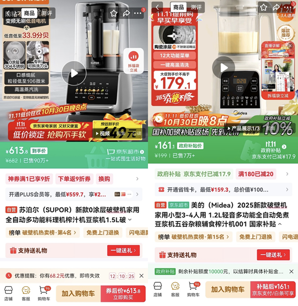 京东11.11厨房小电换新季 美的破壁机现货开抢 活动到手价仅需161.1元