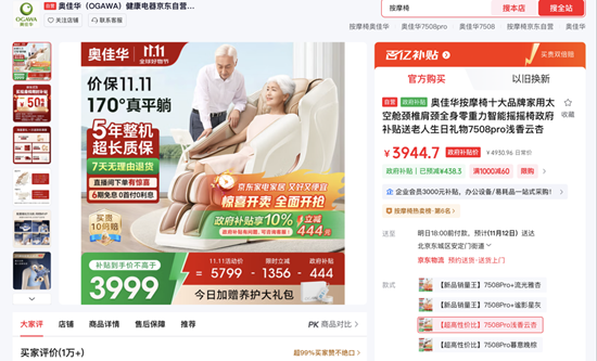 奥佳华7508pro按摩椅,为您开启居家养生新体验。这款按摩椅首创灵动SL导轨,随身而动,任何角度始终贴合,更有170°悬浮平躺,强拉伸超贴合。采用精钢摆臂3D机芯,如同人手般灵活,22套专家主推程序媲美专业按摩技师,在熟悉的家中也能享受星级SPA的舒适感受。京东11.11期间,咨询客服领取200元优惠券,补贴后到手价仅需3744.7元,下单享5年整机超长质保,加赠养护大礼包,还可享6期免息分期,让品质生活触手可及。