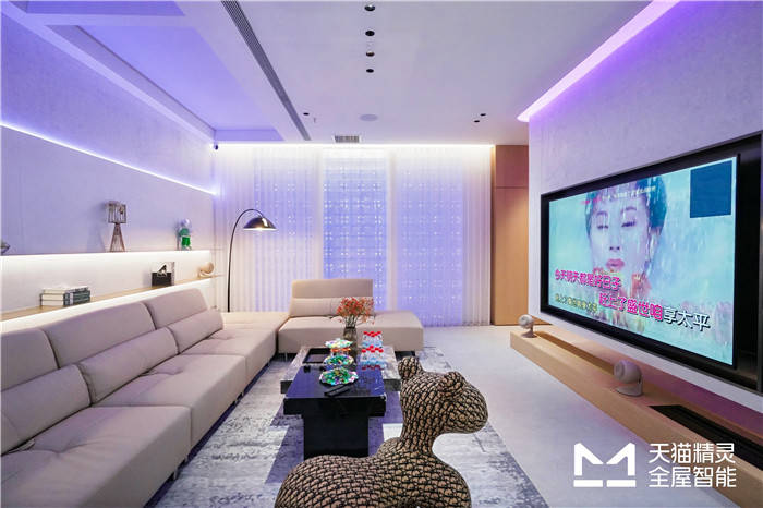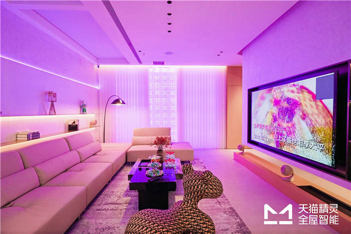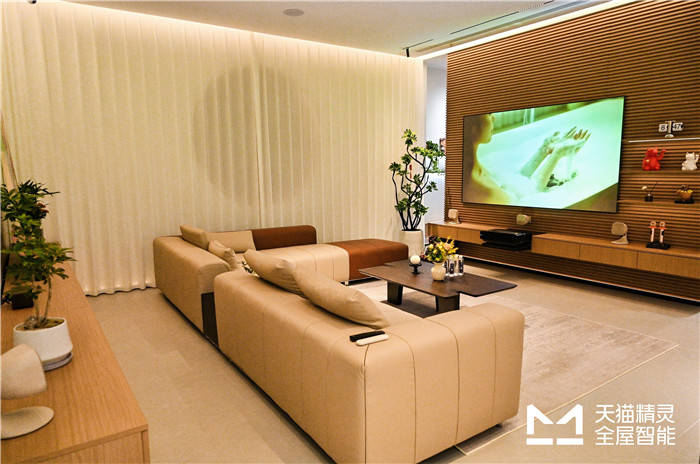 •居然之家晋江店以"未来动线"为核心理念,玄关感应系统自动唤醒灯光与空调,客厅语音切换影院模式时窗帘垂落、灯光渐暗、投影开启,形成流畅的场景转换;