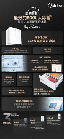 美的熊墩墩系列冰箱,全系机型实现“顶配打底”:600L+超大容积占地却和500L的冰箱一样,搭配60cm深度和左右各4mm的安装预留宽度,实现“小占地、大容量”的平嵌美学;独立双系统制冷从根源避免食材串味,更达到高保湿、制冷快的效果;叠加PST+智能净化技术——这项获两项国际领先认证的净化科技,能在3分钟内急速净味、90秒内去除空气浮游菌,九效合一净除200余种有害物质。