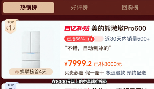 答案或许比我们想象的更简单——看看其他消费者的选择是什么。最近一组数据显示:9月,不论是小红书还是抖音搜索数据,“美的熊墩墩系列冰箱”关键词均排名第一,销量方面也是一骑绝尘:在抖音平台,10月9日至10日,美的冰箱单品销售额高居榜首,在天猫平台,10月9日单日,美的熊墩墩pro冰箱则在8000+价格段销售量排名第一;美的冰箱究竟有着怎样的魅力,能受到如此广泛的青睐?