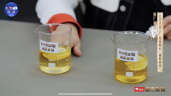节目中,主持人和京东采销现场进行了实验,放在卡萨帝冰箱7天的柠檬,VC流失少,能和碘伏反应让碘伏迅速变透明,而放在老式冰箱中的柠檬几乎没有对碘伏的还原性。通过降氧增氮,这款京东与卡萨帝独家共建的“明星”冰箱实现了8倍保鲜力。