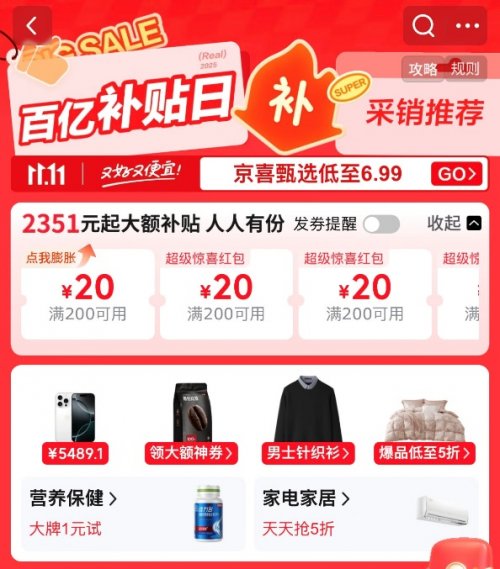 京东数据显示,自今年京东11.11启动至 10 月 20 日 18 时,家电家居有超 2000 个品牌增长超 100%、带电新品成交额增长 84%,市场活力显著。重磅新品中独家共建产品占比为90%,其中海尔舒适风空调、Leader懒人三筒洗衣机、方太P20壁画油烟机、九阳双驱0涂层电饭煲等新品首发即登顶当日品类销售榜。