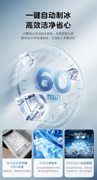 用户对于制冰需求的增长,曾长期伴随着“冰块是否干净”的深层焦虑。传统冰箱制冰过程漫长,且模具、储冰盒易成为细菌温床;部分冰箱产品为追求制冰速度,牺牲了卫生保障,导致用户体验参差不齐。