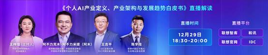 此外,联想还联合IDC率先发布《个人AI产业定义、产业架构与发展趋势白皮书》。在产业变革的大时代里,你可以在其中找到关于个人AI产业发展、大模型厂商的未来、智能体的个性化趋势等一些行业热点问题的答案,登录联想官网即可查看报告。