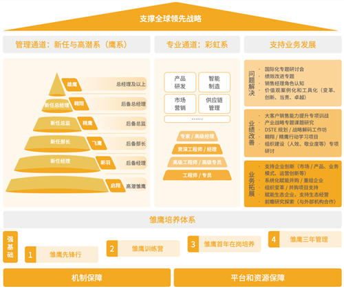 长期以来,TCL科技将员工视为最宝贵的财富,并为之构建了完善的“专业与管理双通道”人才培养体系。通过“雏鹰-飞鹰-精鹰-雄鹰”的鹰系项目,该公司系统性地培养从后备人才到高层管理者的各级精英。同时,“彩虹系”专业通道为技术研发、智能制造等领域的专业人才提供了清晰的晋升路径。