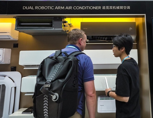 海外市场负责人同客商洽谈双机械臂空调等产品