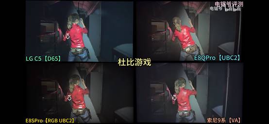 以海信E8S Pro为例,其具备最高9360个背光分区与6200nits峰值亮度。高亮度让画面更透亮、色彩更鲜艳,高分区则提升了对比度和层次感,光晕也控制得很好。可以看到在杜比游戏模式下,配合UBC+压黑技术后,海信E8S Pro黑位的深邃感又进了一层,画面通透不泛白,暗部的铁柜和纸箱细节呈现得清清楚楚,甚至把OLED的“血统优势”给比下去了。