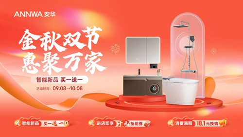 即日起至10月8日,安华卫浴“金秋双节,惠聚万家”活动推出包括智能新品买一送一、云闪付最高8折、进店领千元券等诚意礼遇,覆盖智能马桶、花洒、浴室柜、淋浴房等全系产品,融合健康防护、智能便捷与洁净美学,全面回应现代人对于理想卫浴空间的深切向往。