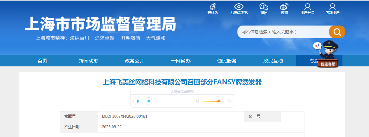 导读: 家电消费网9月25日讯 昨天,上海飞美丝网络科技有限公司召回500件FANSY牌烫发器。 生产日期为2023年7月1日至2023年7月15日,型号为A7。生产批号为GOOINPO20230626001。 存在的缺陷是标志和说明、对触...