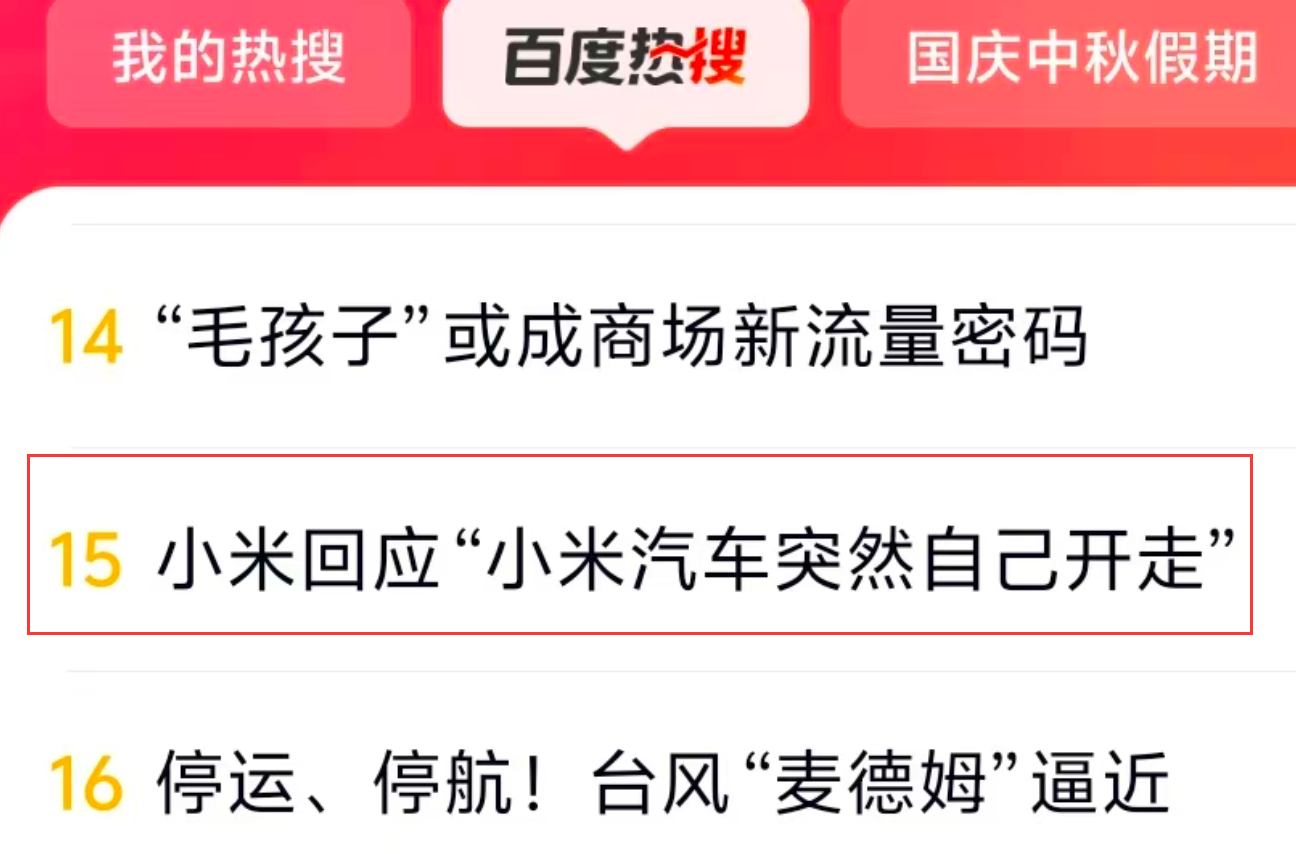 小米回应“小米汽车突然自己开走”冲上百度热搜:用户原因造成