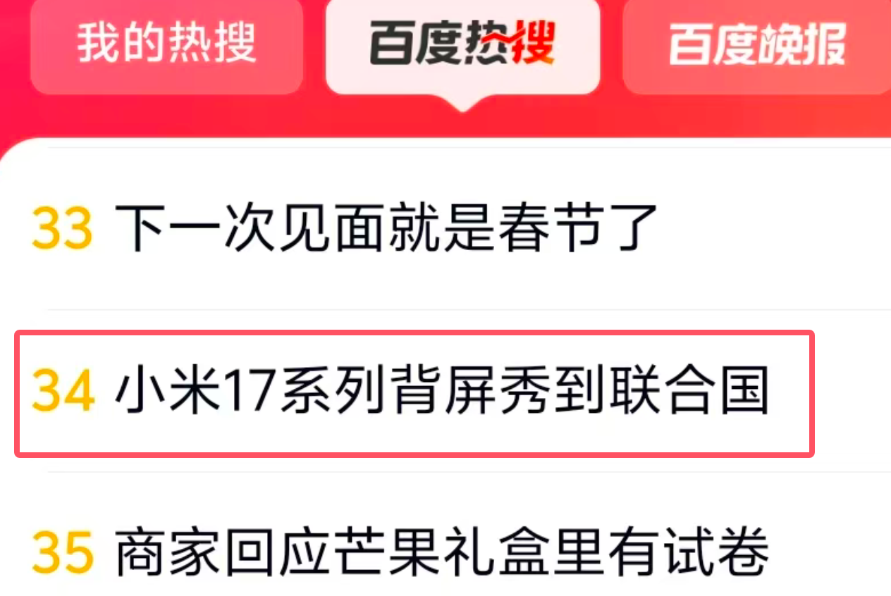 “小米17系列背屏秀到联合国”冲上百度热搜