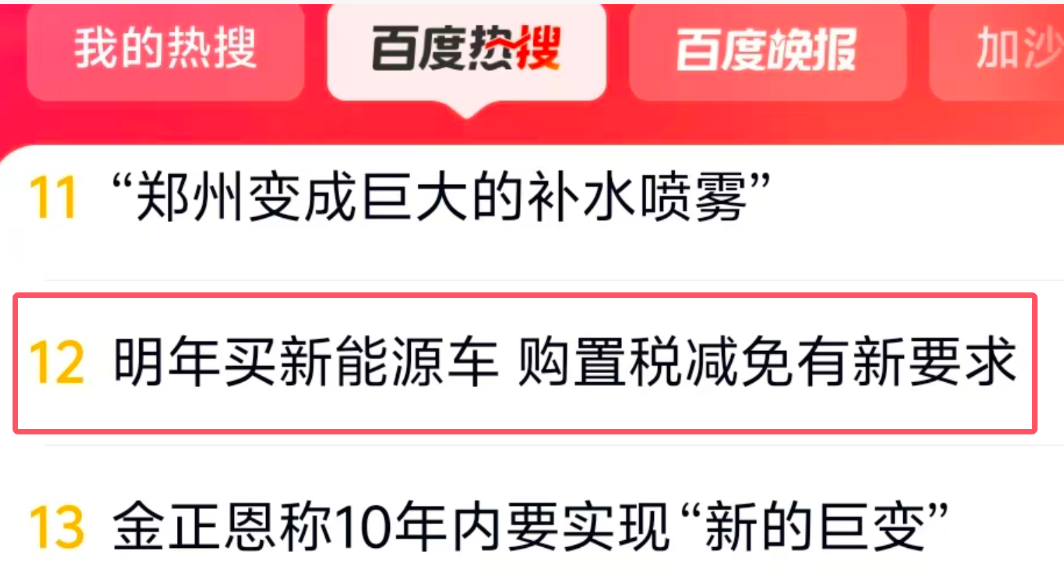 “明年买新能源车 购置税减免有新要求”冲上百度热搜