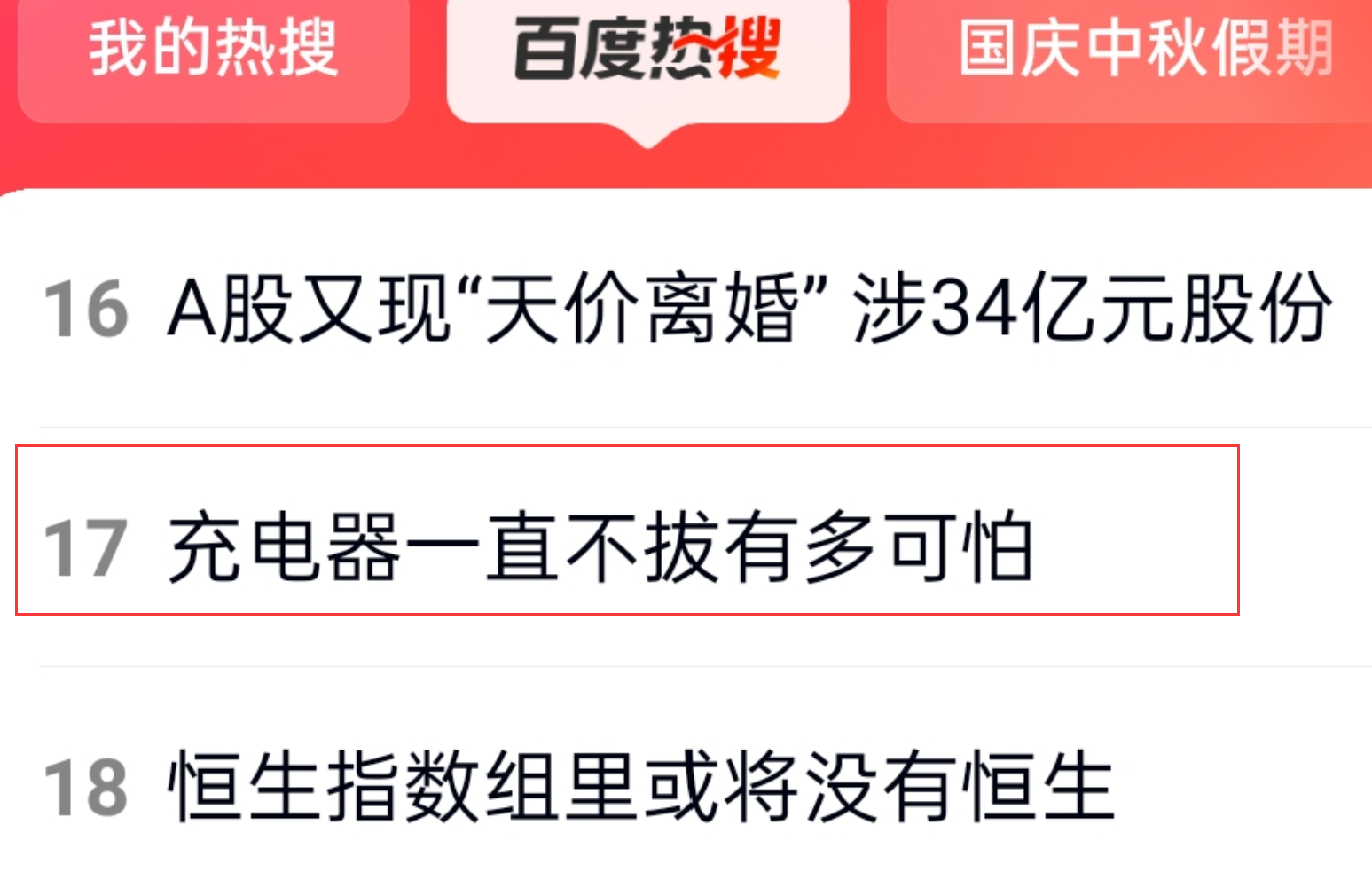 家电消费网10月11日讯 今天,“充电器一直不拔有多可怕”冲桑百度热搜。