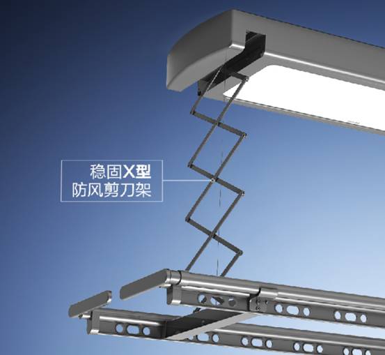 智能的照明设计。集成24瓦宽屏照明,晾满衣服也不挡光。夜间也可轻松收晾衣物,告别昏暗阳台,更省下一台阳台灯。