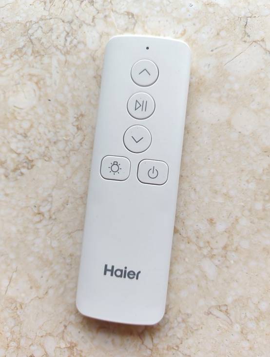 手持无线遥控,按下上升、下降的按键,晾衣杆就升降自如。值得一提的是,该晾衣机有双向遇阻即停功能,衣杆上升或者下降遇到阻力,反向回弹,防止夹伤。还可以轻抬上升,这个功能是当我们晾晒衣服,手上很湿或者取下衣服的时候,可以不用去找遥控器,只需轻抬晾衣杆即自动升起;当我们在阳台进行其它活动的时候,可以轻抬上升以防我们头部或者身体碰到晾衣杆。笔者将晾晒高度定在了1.1米高,这个高度晒衣不弯腰不仰头。